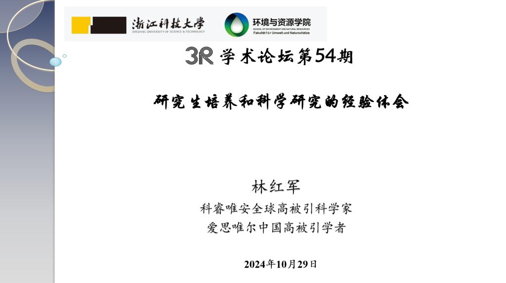 并作题为“研究生培养和科学研究的经验体会”的报告,报告由刘赫扬院长主持,学院环境工程系及轻化工程系教师等三十余人参加了报告会。