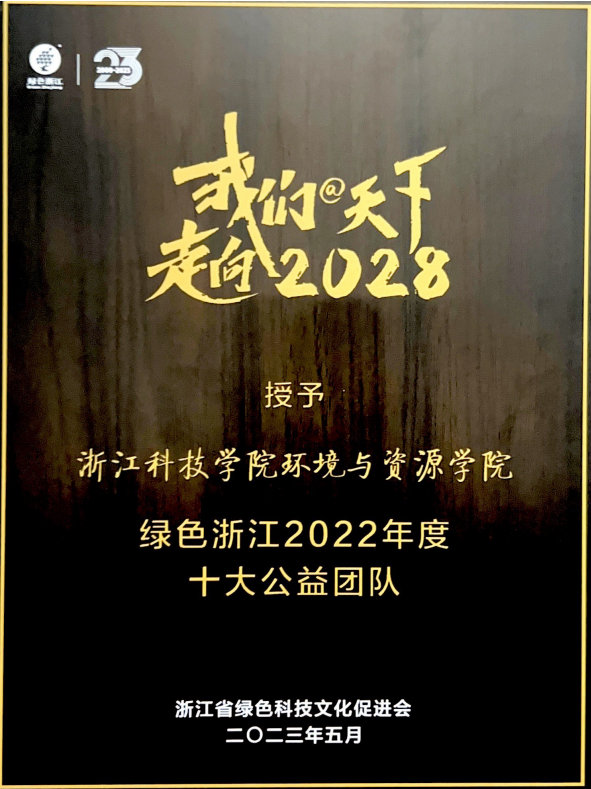 会上表彰了浙江科技学院环资学院、浙江电视台新闻频道、杭州市学军小学教育集团等10家单位为绿色浙江2022年度十佳公益团队。2022年,环资学院积极践行“两山”理念,大力开展绿色低碳育人,深化废弃生物质利用与土壤修复研究。特别是以“低碳循环,绿色发展”为主题,联合组织了首届全国、浙江省大学生低碳循环科技创新大赛,鼓励大学生积极投身绿色低碳实践。(院办 张琰)