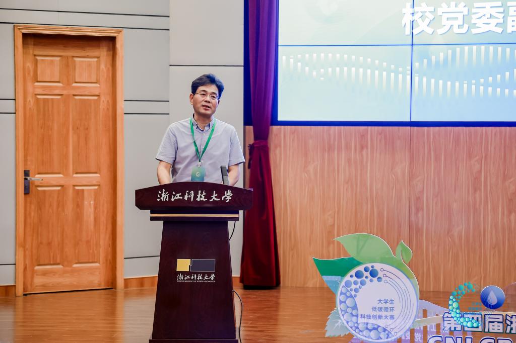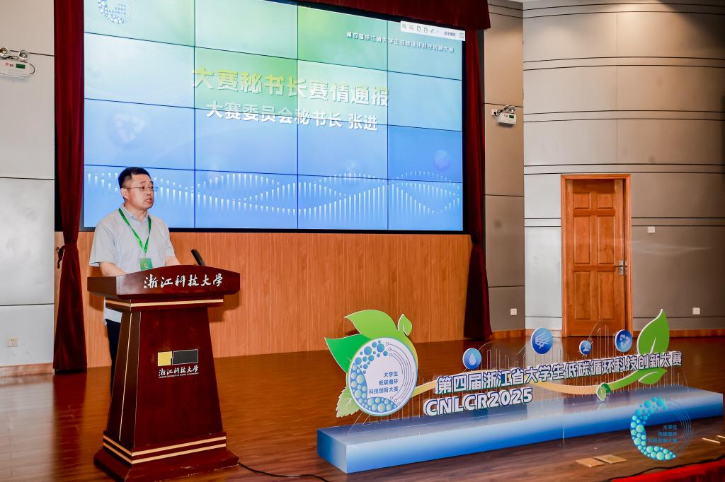致欢迎辞,他对入围决赛的参赛师生表示祝贺和欢迎。单胜道指出,2025年是习近平总书记提出“绿水青山就是金山银山”理念20周年,也是碳达峰碳中和重大宣示5周年,是全面推进美丽中国建设的关键时期,希望同学们通过参加大学生低碳循环科技创新大赛,充分展现新时代青年坚决扛起绿色发展的责任担当,彰显以科技创新服务生态文明建设的青春力量。