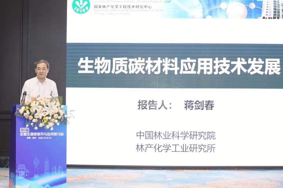 蒋剑春院士围绕“生物质碳材料应用技术发展”,系统介绍了生物质炭在农业与工业方面的应用前景,可作为实现生物质处理及资源回收和利用的有效手段,为支撑生态文明建设提供科技保障。