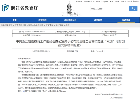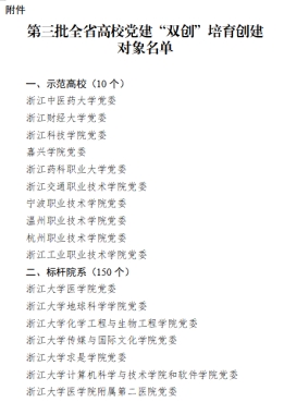 近日,浙江省教育厅公布了第三批全省高校党建“双创”培育创建对象,确定10所党建工作示范高校、150个标杆院系为第三批全省高校“双创”培育创建对象。浙江科技学院香港五级片