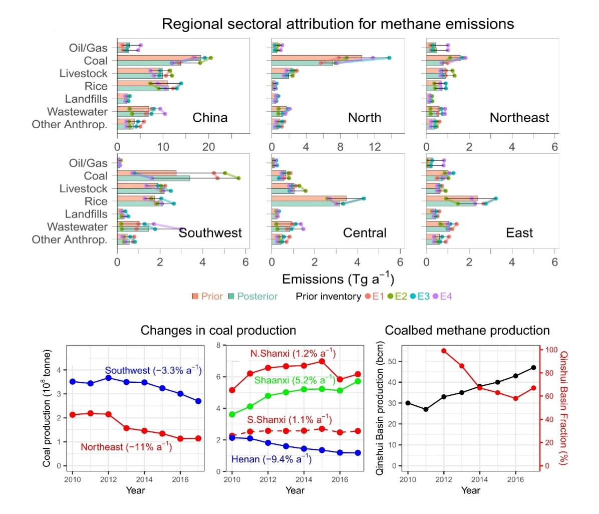 本研究基于2010-2017年全国环境大气中CH4浓度的变化情况,运用反演模式估算我国CH4排放量约5000万吨/年,与国家统计结果吻合,CH4年排放量增速与2001-2010年相比显著降低。研究表明,我国不同地域的CH4排放量与当地能源、农业及环境政策密切相关,例如山西、河南等地虽然燃煤产量增加,但是仍可通过大规模煤层气开发利用,实现CH4排放量的显著降低。