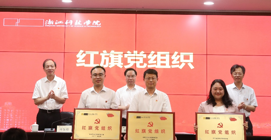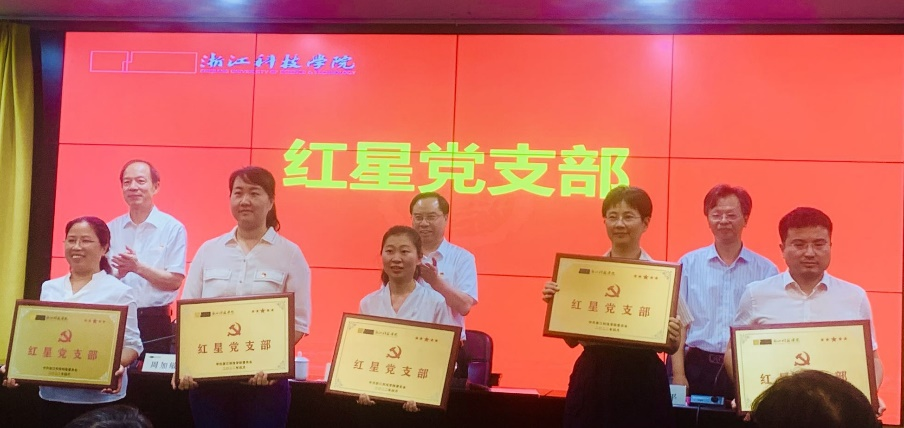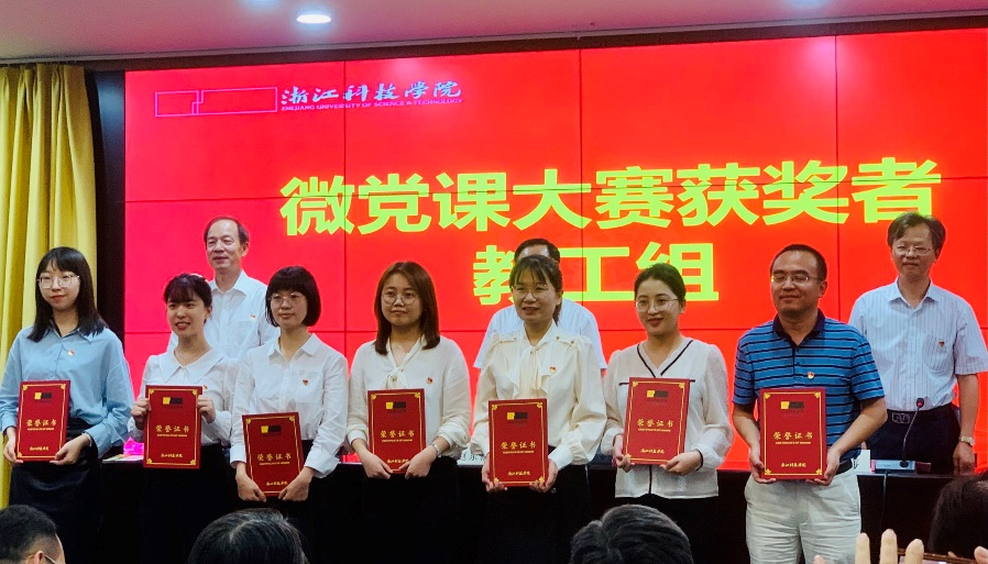 党总支再获校“红旗党组织”;环资学院轻化系教师党支部获“红星党支部”;李莹老师“白+黑”版的双碳故事获校第二届微型党课大赛教工组二等奖,表彰大会上,校领导为获奖单位和老师颁发了证书。