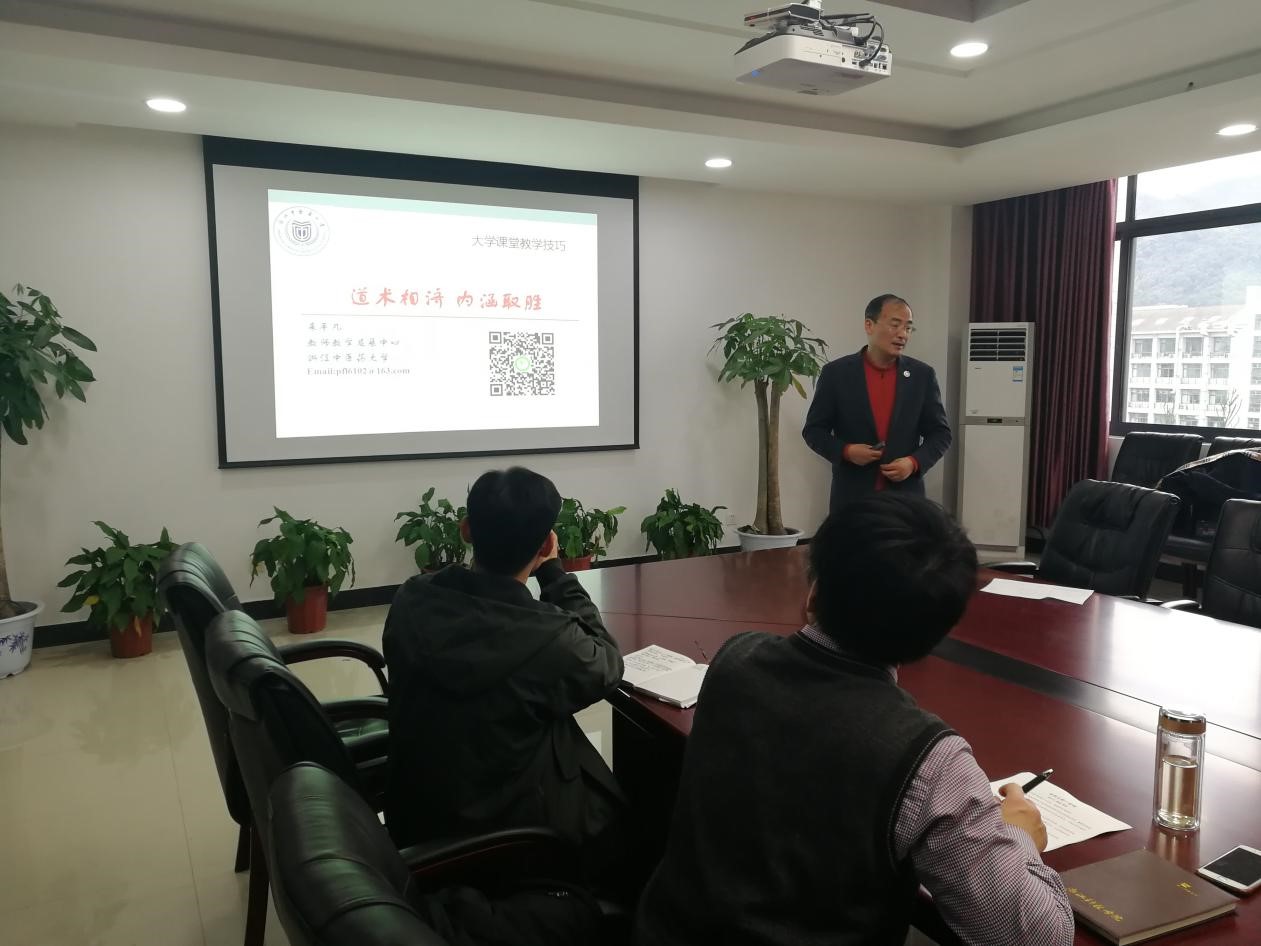 12月26日,浙江中医药大学教教师教学发展中心主任、高教研究所所长、博士生导师来平凡教授在环资学院会议室611室进行了主题为“如何上好一堂课”的报告,胡志军副院长、环资学院教师、新教师研习营教师等参加了本次论坛。