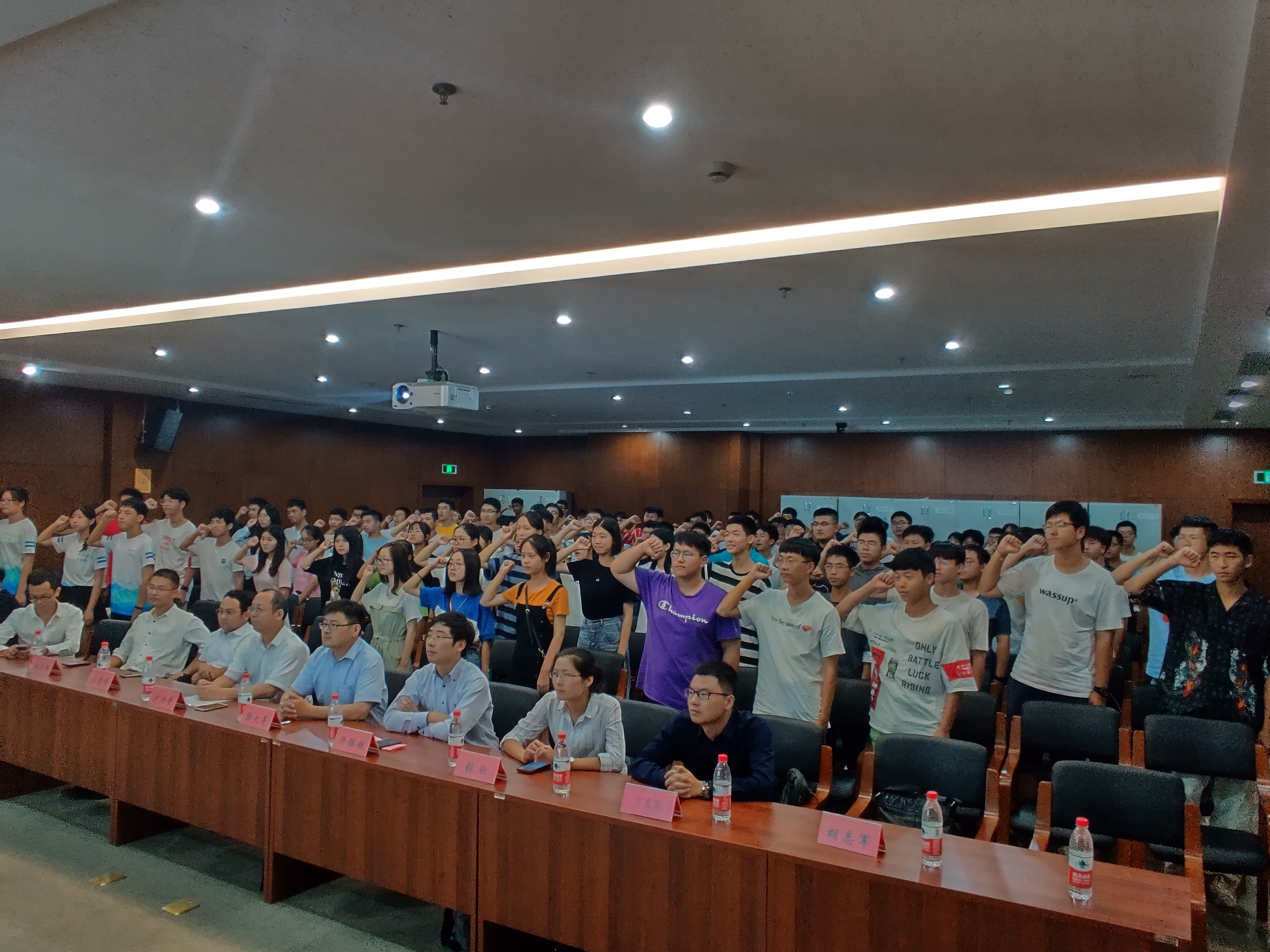 会议最后,19级新生全体起立、进行宣誓,“践行校训,遵循院训,坚定信念,志存高远,勤学修德,追求卓越”等誓词让新生们更加明确未来的目标和背负的责任。