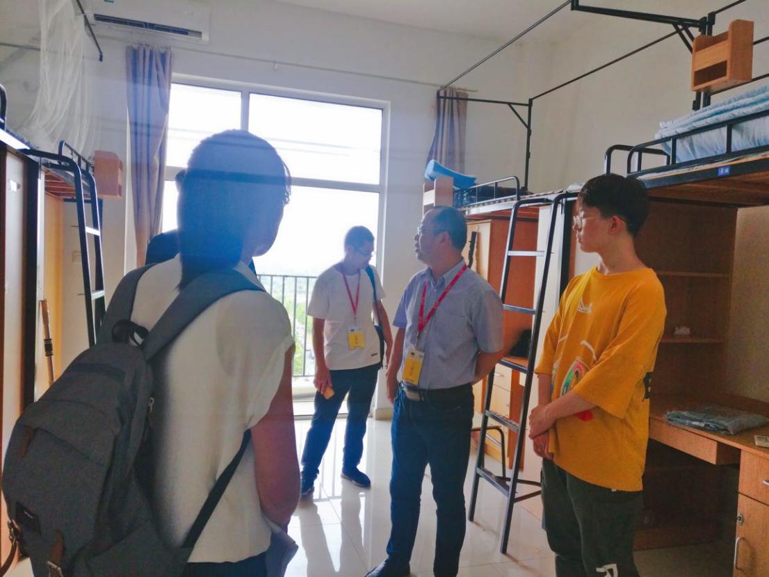 傍晚时分,学院领导、各系老师、辅导员和助班们走访了新生寝室,看望新生,了解新生入住情况及困难,并对一些安全问题进行了提醒。还特地看望了来自苗族、蒙古族和回族的4位同学,了解他们的生活习俗,饮食习惯等,帮助他们更好的适应大学生活。对于大部分同学来说,这应该是第一次离家求学,离开了父母的庇护和照顾,可能会有些不适应。学院领导和老师的到来,让他们又一次感受到家人的关怀。