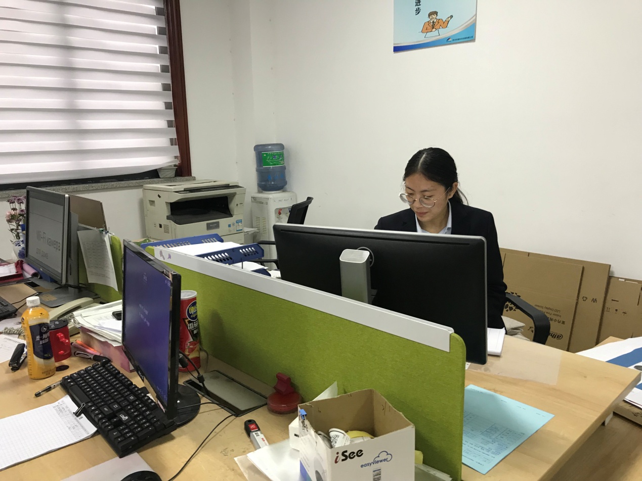 图4徐王婷同学在工程部实习工作照