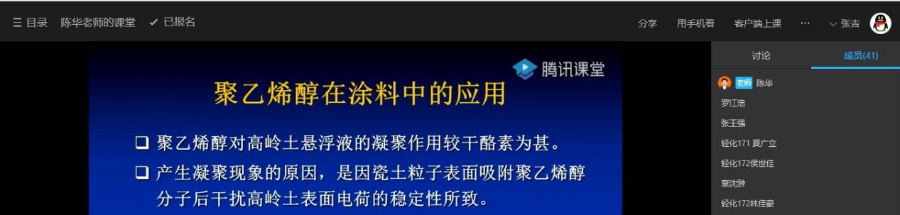 授课教师陈华:教学网络流畅,声音清晰,老师上课内容熟悉,但缺少教学互动手段