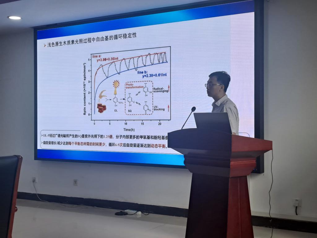 ,并作题为“木质素天然防晒护肤及其长效机制”的学术报告,报告会由胡志军副院长主持,学院专业教师和硕士研究生等二十余人参加了报告会。
