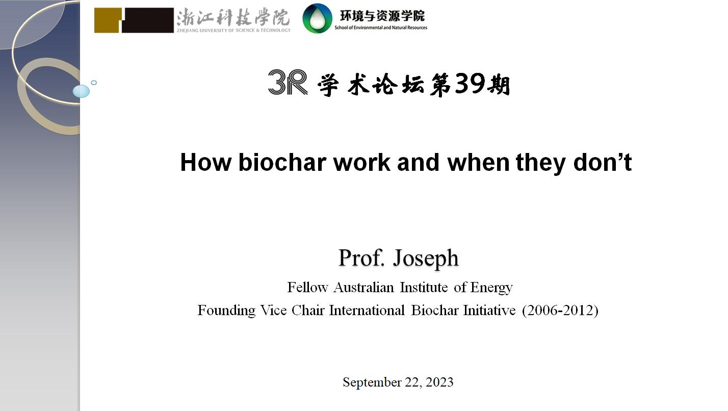 Joseph教授是生物质炭研发与推广应用领域的权威专家、国际生物质炭科技与工程先驱、国际生物质炭协会的主要发起者之一、Biochar for Environment Management合编者和澳大利亚国家荣誉勋章获得者,近年来在包括Nature Climate Change、Nature Communications、ISMEJournal等国际知名期刊发表生物质炭相关的高水平研究论文80余篇,并入选全球前1%高被引科学家。(环资学院陈翰博)