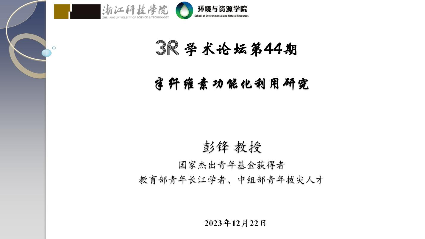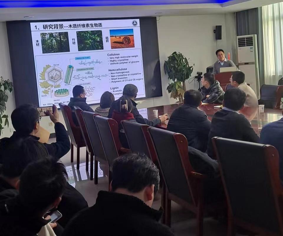 并作题为“半纤维素功能化利用研究”的报告,听同事分享国家自然科学基金申请经验。报告会由环资学院刘赫扬院长主持,环资学院党委书记李俊、副院长胡志军,组织部副部长张学金,环资学院师生及浙江理工大学、省林业科学研究院相关学科人员等40余人参加并聆听了报告。