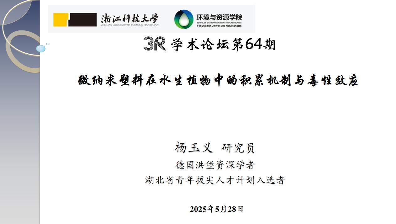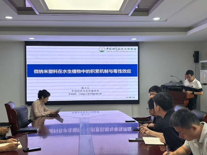报告中,杨玉义研究员着重介绍了新污染物在长江及其中下游湖泊(抗生素、微塑料、耐药基因等)的赋存、分布及生态健康风险,并以典型水环境微生物组与塑料际的相互作用机制研究为基础,阐释了微纳塑料在水生植物中的吸收转运过程。此外杨玉义研究员分享了SCI论文投稿的宝贵经验和注意事项。最后,杨玉义研究员和参会师生进行互动交流,对微塑料分布及生态效应、水生植物修复技术可行性、高水平SCI论文投稿等问题进行了详细解答。