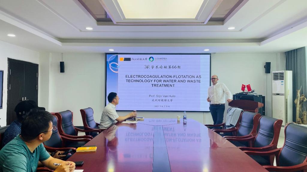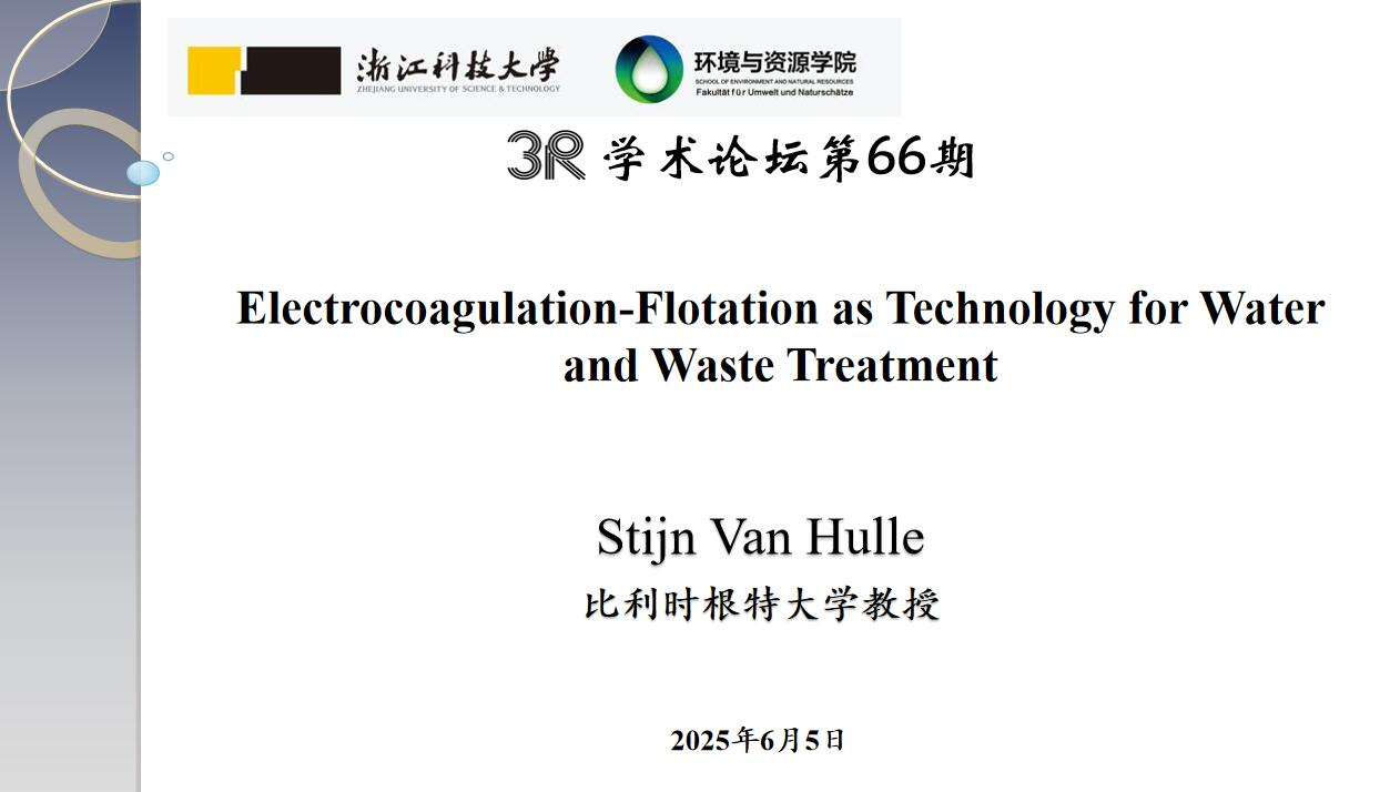 报告会上,Stijn Van Hulle教授系统介绍了电絮凝-气浮(ECF)技术的核心原理与创新应用,指出ECF技术主要通过电化学过程原位生成金属离子并结合絮凝与气浮作用实现污染物的高效去除,该技术具有无需额外投加化学药剂、污泥产量低、操作灵活等优势。随后Stijn Van Hulle教授结合其团队的最新研究成果,分享了ECF技术在工业废水处理、市政污水深度净化、资源回收利用等场景的创新应用案例,为参会师生拓展了水处理技术研究的新思路。