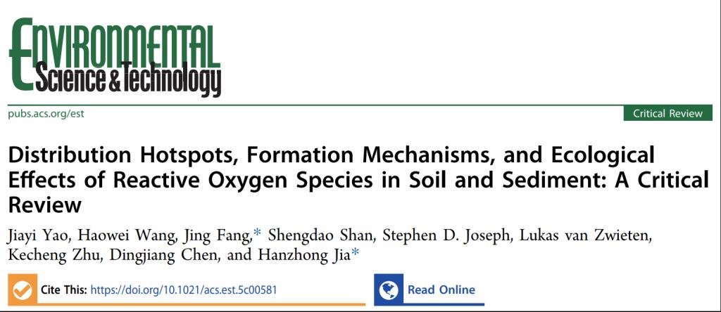 废弃物循环利用与减污降碳团队方婧教授课题组在环境领域著名学术期刊Environmental Science & Technology上发表题为“Distribution Hotspots, Formation Mechanisms, and Ecological Effects of Reactive Oxygen Species in Soil and Sediment: A Critical Review(土壤和沉积物中活性氧的分布热区、形成机制及生态效应:综述)”的综述论文。环资学院青年教师姚嘉一为论文第一作者,环资学院方婧教授和西北农林科技大学资源环境学院贾汉忠教授为论文共同通讯作者,香港五级片
