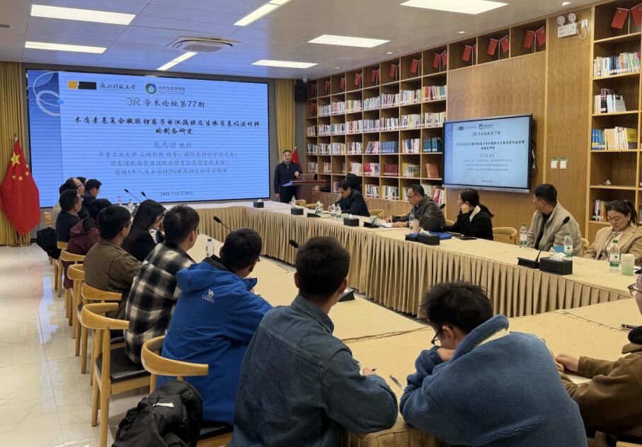 ,孔凡功教授作为主讲嘉宾做了“3R”学术论坛第77期学术报告,题目为《木质素基复合凝胶锂离子电池隔膜及生物质基吸波材料的制备研究》。报告由学院党委书记李俊教授主持,30余位校内外相关领域的专家及师生参与报告会。