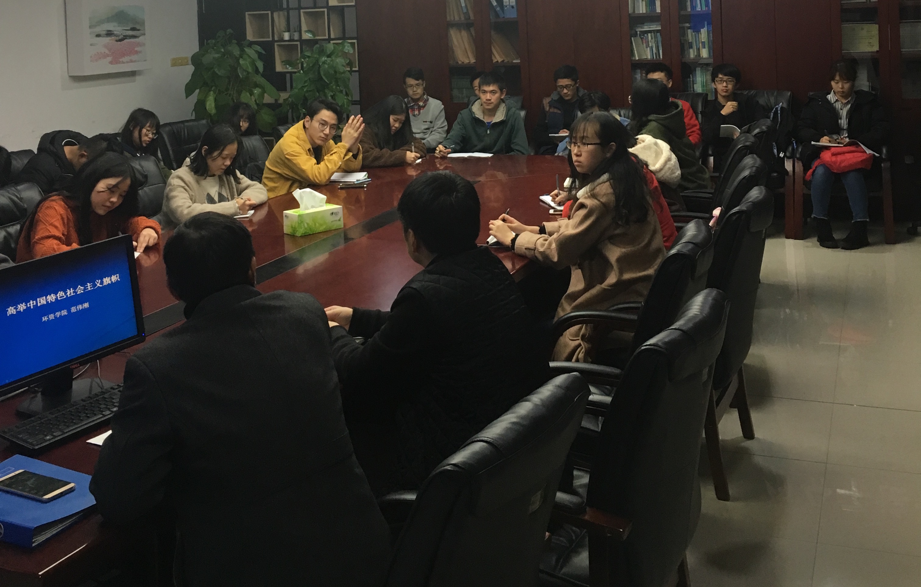 第一期党课第二讲在实验大楼609召开,本次主讲老师为原生化/轻工学院党委书记范伟刚老师,环资学院副院长胡志军老师主持本期党课。