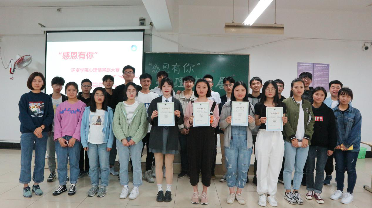 4月28日万6点,由环资学院社团联合会与环资学院大学生心理健康联合会联合举办的“感恩有你”环资学院心理情景剧大赛在A2-230隆重举行。本次大赛有幸邀请到辅导员王婷婷老师、张东老师以及16级学生代表担任评委。
