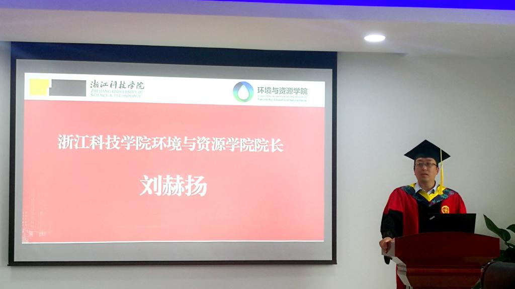 会上环资学院院长刘赫扬首先代表学院发言。刘院长首先对毕业生表示了祝贺,他希望大家尽快完成从青年学生到职场工作人员的角色转换,爱岗敬业,踏实工作,在自己平凡岗位上创造不平凡的业绩。鼓励毕业生踏入社会后积极工作、丰富人生经历、创造自身社会价值。
