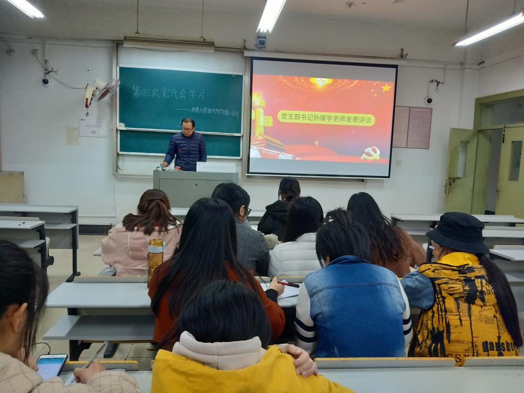 最后支部书记孙耀宇老师结合大家的发言对校第四次党代会报告做了针对性解读,并希望大家在以后的学习生活中,紧紧围绕党代会报告精神,时刻不忘党员身份做好带头表率