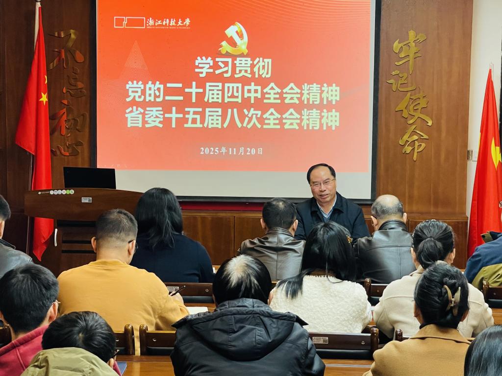 党委召开理论学习中心组专题学习会,传达学习党的二十届四中全会精神和浙江省委十五届八次全会精神。校党委书记赵东福到会巡听旁听并作指导讲话。会议由环资学院党委书记李俊主持。