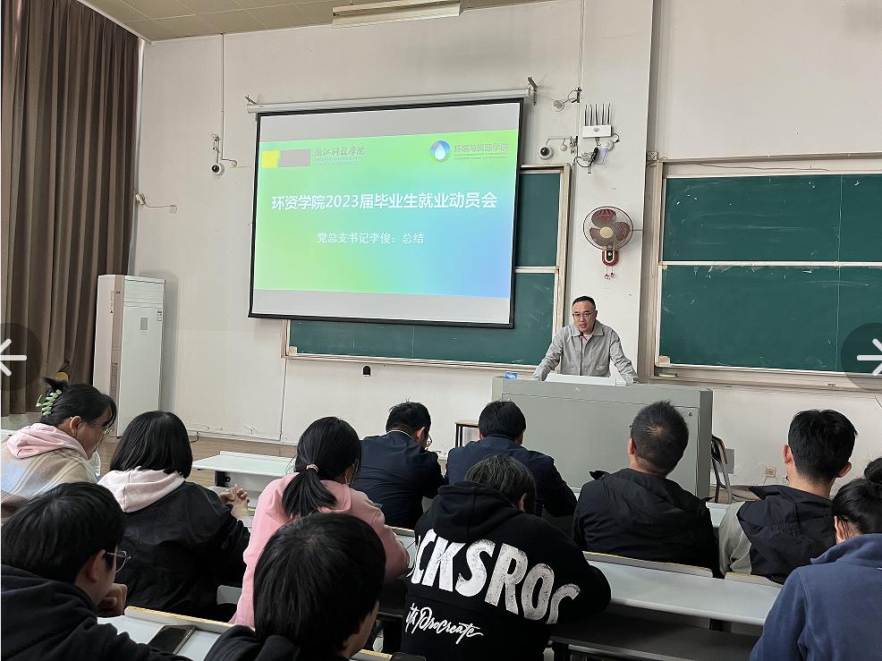 2022年10月18日,环资学院2023届毕业生就业动员大会在A3-117顺利举行。学院党总支书记李俊、副书记张进、招就处俞广良,各系负责人、班主任、教务办、学工办,以及2023届全体本科生、研究生参加了此次大会。大会由学工办程勇杰主持。